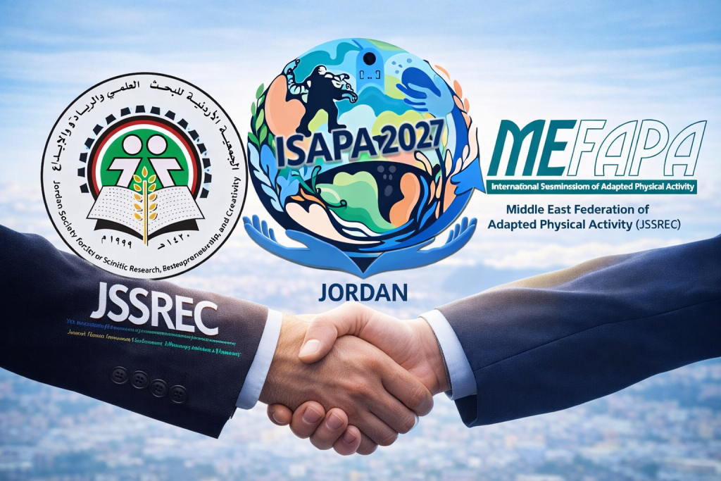 This edition of ISAPA is proudly organized through a strategic partnership between the Middle East Federation of Adapted Physical Activity (MEFAPA) and the Jordan Society for Scientific Research, Entrepreneurship, and Creativity (JSSREC), in collaboration with the Middle East region of adapted physical activity under the umbrella of International Federation of Adapted Physical Activity.